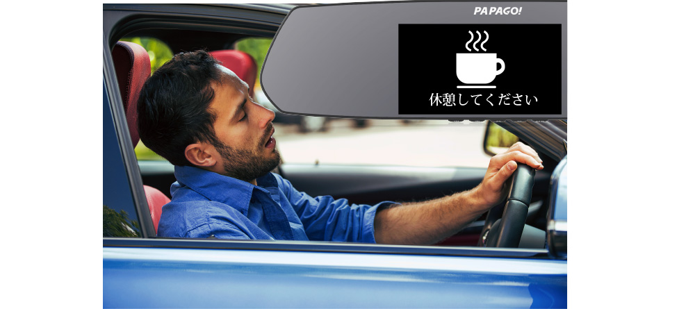 あおり運転対策として、前と後ろの2つのカメラで映像を記録します。