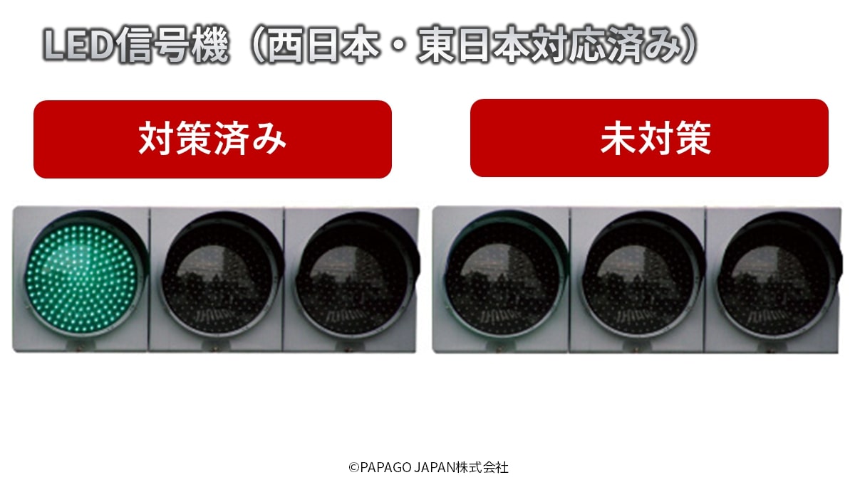 LEDは点滅しているため、西日本/東日本のLED信号機の色がわかるように高速点滅で記録を残せる機能です。